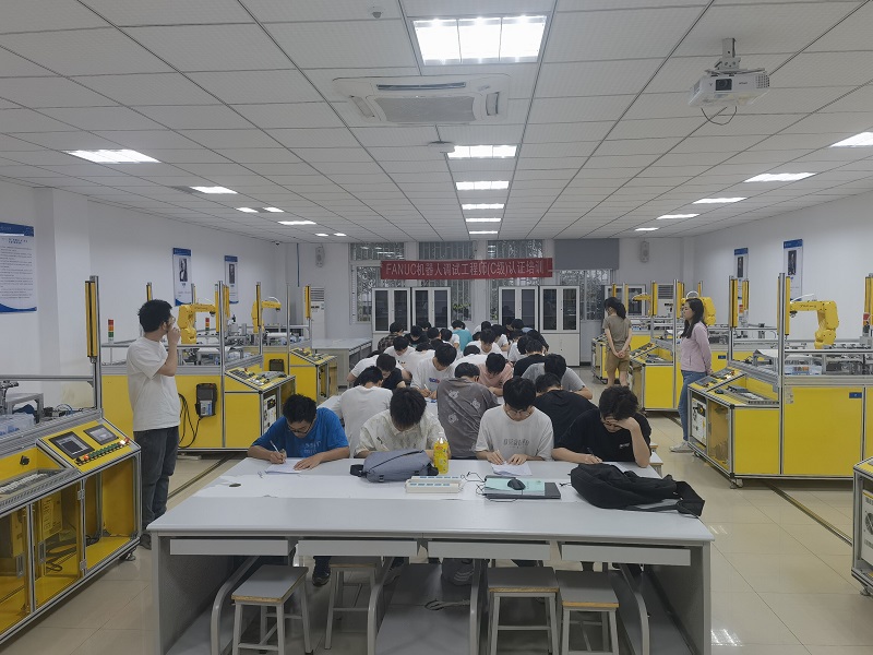 本网讯(文/图 电子信息学院 钱雅楠)为进一步增强学生专业技术能力水平和就业竞争力,满足企业对智能制造领域复合型人才的需求,近日,电子信息学院充分整合利用校、企优质资源在4教113 FANUC机器人授权培训中心开展了FANUC机器人调试工程师(C级)资格认证工作。