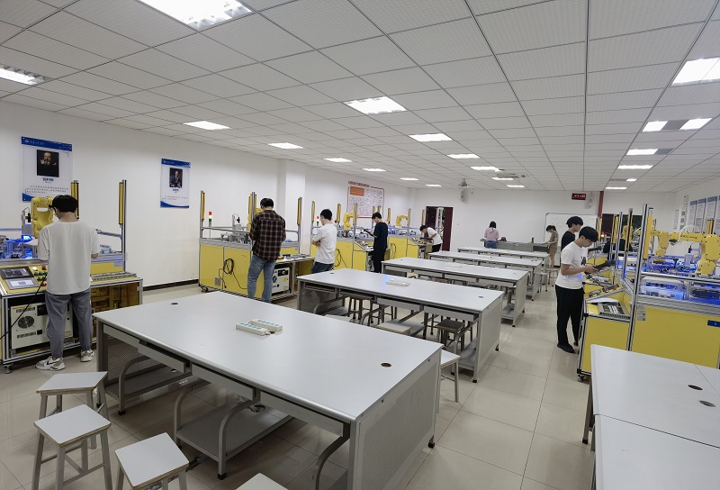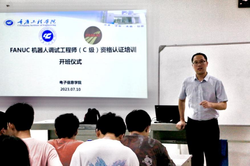 此次认证培训共有来自自动化、机器人工程的35名学生报名参加,讲师由陈成瑞、钱雅楠、余枚姣、杨文科担任,内容涵盖安全与规范、操作与编程、调试维护等,通过理论讲授和实践操作开展实施。通过培训,参训学员能够在工业生产中更好的胜任工业机器人操作、编程、调试、维护等工作,通过理论考核和实践考核的学员,将获得由FANUC官方授权的“FANUC机器人调试工程师(C级)”证书,并纳入其全球人才库。