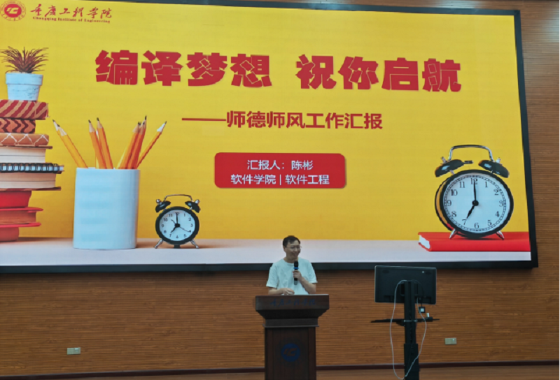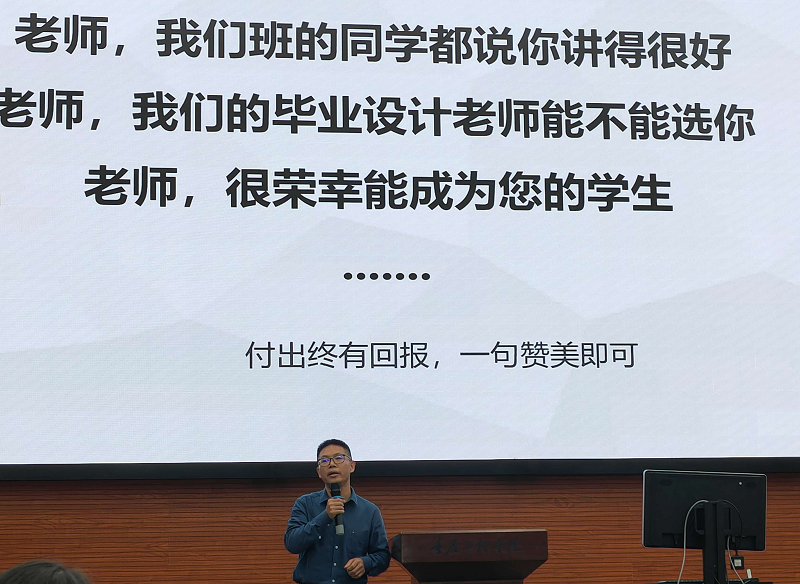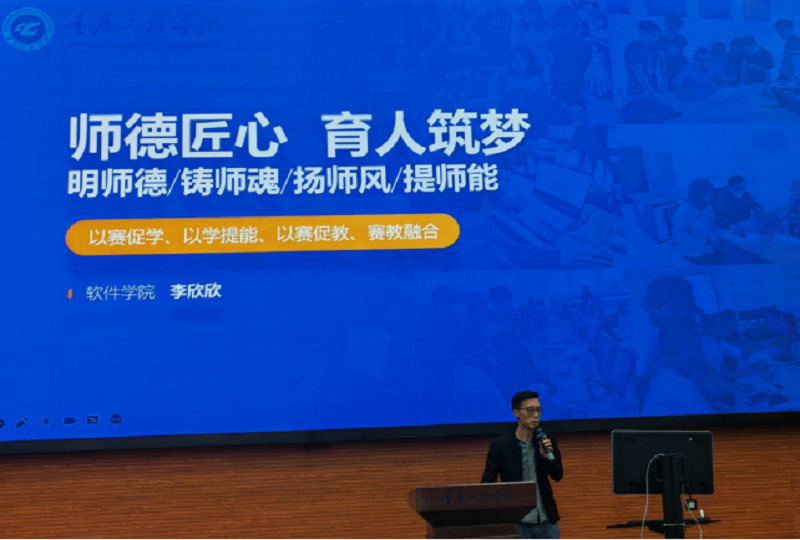 随后,各系(教研室)、学生科5名教师展开主题宣讲。软件工程系冷亚洪老师以《践行师者的重工人》为题,讲诉他夜以继日践行教师责任和使命。他从早到晚、从寒假到暑假,都在与老师交流,处理工作事务;准备上课内容,解决学生问题;紧跟行业动态,学习专业知识。哪怕在住院期间,他都在批改作业,回复学生问题,他是重工精神熏陶下的不畏艰难的学生楷模。