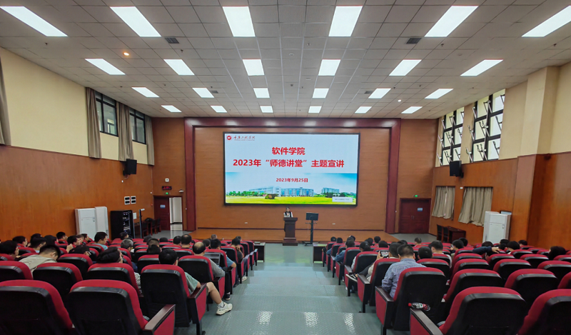 本网讯(文/图 软件学院 宁丽丽)为进一步加强师德师风建设,增强教师教书育人的责任担当,扎实推进师德师风建设常态化、制度化,9月25日,软件学院在七教报告厅开展2023年“师德讲堂”主题宣讲。宣讲会由党总支书记刘子菱主持,学院党政班子成员及全体教师参加。