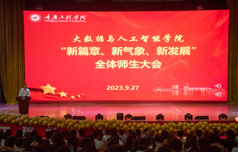 本网讯(文/图 大数据与人工智能学院 宁俊龙、江丽娜)9月27日下午,大数据与人工智能学院在学术报告厅举行“新篇章、新气象、新发展”全院师生大会,党委副书记、常务副校长张业平,学院全体教职工、在校学生参加会议。会议由学院党总支副书记宁俊龙主持。
