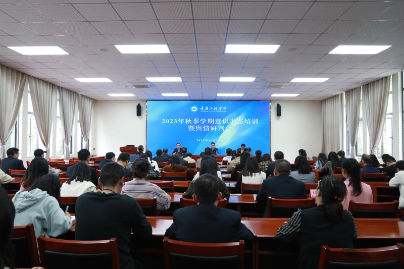 本网讯(文/图 党委宣传部)10月13日,我校于南泉校区第四会议室召开2023年秋季学期意识形态培训会。党委书记、督导专员陈长虹,党委副书记、常务副校长张业平,副校长王建东,相关职能处室负责人 、二级学院总支书记、组织员、辅导员参加本次会议,双桥校区以视频形式参会。会议由张业平主持。