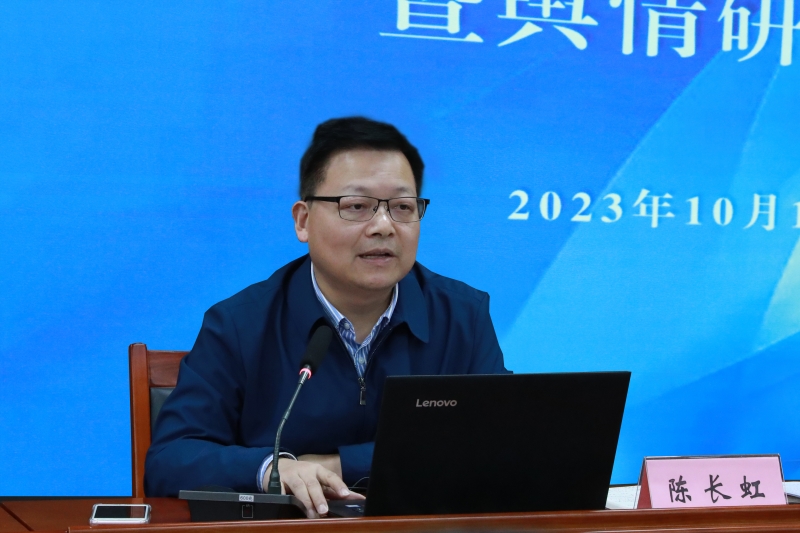 陈长虹结合习近平总书记关于网络强国的重要思想和对网络安全和信息化工作作出的重要指示精神,介绍了新时代网络意识形态和舆论环境面临的新形势新变化,分析了舆情风险的诱因及产生的源头、发展的规律。陈长虹强调,要密切关注我校意识形态工作前沿,进一步建立横向到边,纵向到底的意识形态责任体系,各部门要紧密配合,形成共同做好意识形态工作的强大合力,以多种形式持续加强政治理论学习,不断强化师德师风建设,落实好立德树人根本任务,紧绷意识形态这根弦,推动意识形态工作真正落到实处。