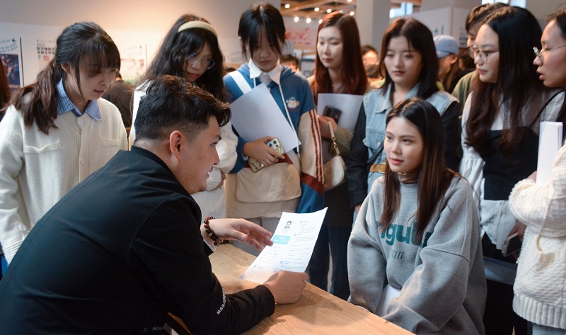 交流会结束后,用人单位在五教展厅进行实习双选环节,同学们面对企业犀利提问、专项考察,仍然应对自如,尽最大程度向企业展现所学所想、所能所长。2021级的学生作为后备军,也早早来到双选会会场,感受紧张、温馨的氛围,提前为以后的就业做好经验准备。