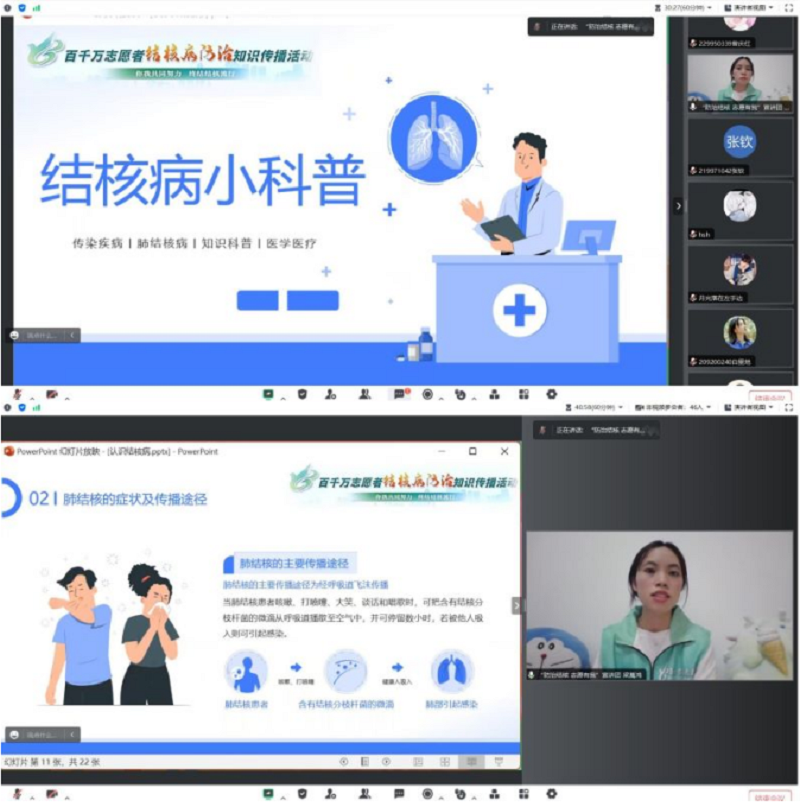此外,宣讲团积极与重庆市巴南区结核病防治所沟通联系,参与重庆市结核病防治所召开的全市结核病健康促进与社会动员培训会,与23支志愿宣讲队伍分享交流了结核病防治知识志愿宣讲服务方式、要求及技巧。