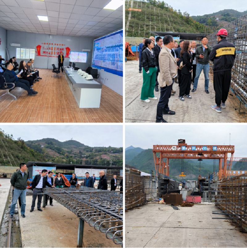 本次调研重点考察了白帝城长江大桥、大溪河特大桥、小营特长隧道等重点控制性工程项目施工现场、数字化监控中心及项目部;同时,考察了重庆交通建设(集团)有限责任公司(以下简称重庆交建)钢材数字加工工厂、智慧梁厂及其数字指挥调度中心、庙宇互通架梁区等。