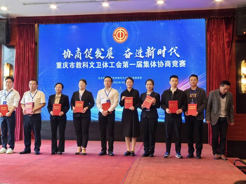 本网讯(文/图 校工会 邓俊梅)为推进教科文卫体系统集体协商工作,进一步加强协商人才队伍建设,通过模拟协商、知识竞赛等方式,提高工会干部、职工代表协商劳动关系的能力水平。市教科文卫体系统第一届以“协商促发展 奋进新时代”为主题的集体协商竞赛活动于10月20日在江北区君豪大饭店落下帷幕。