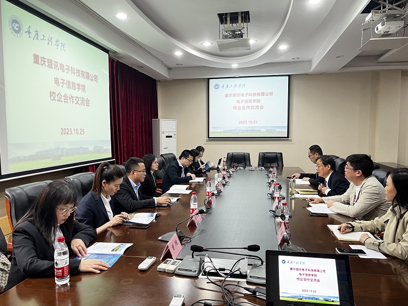 本网讯(文/图 电子信息学院 魏登雪)10月25日,重庆盟讯电子科技有限公司党总支副书记马显英女士一行7人来校开展校企合作交流。电子信息学院院长何世彪、党总支书记谭思宇、副院长陈成瑞参加本次交流会。会议由学院就业科副科长卢瑛主持。