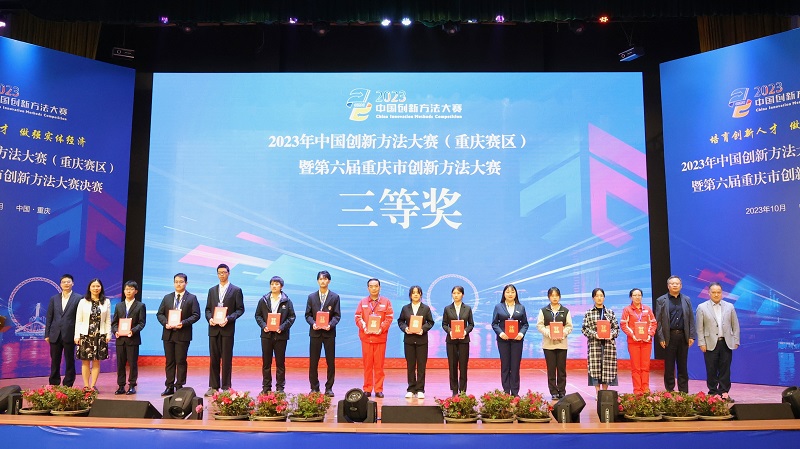 本网讯(文/党委宣传部 图/大学生记者团 刘欣怡、张新雨、向洪滔)10月28-29日,由重庆市科学技术协会、重庆市科学技术局、重庆市人力资源和社会保障局、重庆市总工会联合主办,重庆市创新方法科技创新中心、重庆市科协科技服务中心、重庆市人才交流服务中心、重庆高技术创业中心、重庆工程学院承办的2023年中国创新方法大赛(重庆赛区)暨第六届重庆市创新方法大赛决赛在重庆工程学院隆重举行。重庆市科学技术协会党组成员、副主席戈帆,重庆市总工会党组成员、副主席蒋扬福,重庆市科学技术局二级巡视员杨军,重庆工程学院党委书记、政府督导专员陈长虹出席颁奖仪式。颁奖仪式由重庆工程学院党委副书记、常务副校长张业平主持。