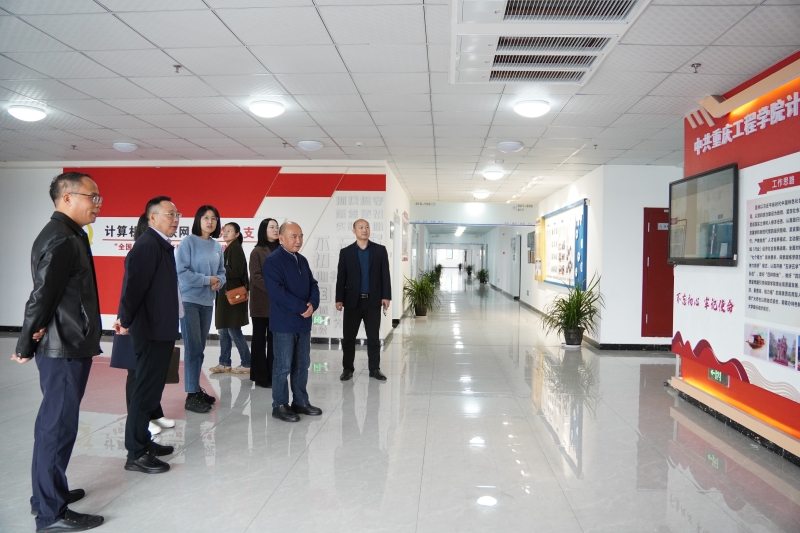 谭明术、蒋国华陪同崔广平一行参观了学校党员教育中心、计算机与物联网学院党建之家和学校智慧校园中心,并开展高校党建“双创”工作探讨交流。