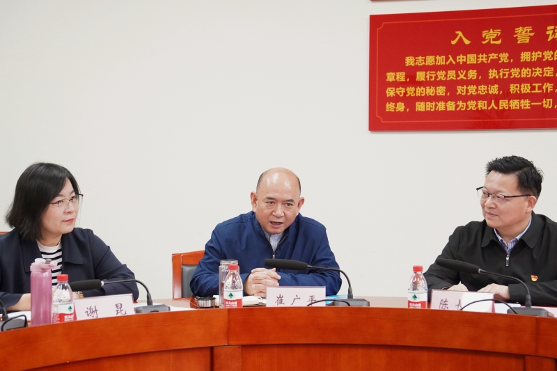 陈长虹代表学校欢迎崔广平一行到校交流指导工作,并介绍了学校党建工作基本情况。他表示,学校党委坚持党对教育事业的全面领导,坚持社会主义办学方向,坚持立德树人根本任务,坚持发挥党委政治核心作用,坚持“一手抓规范,一手抓示范”党建工作思路,形成了党建有认识、党建有氛围、党建有阵地、党建有成效的“四有”党建格局,当前学校各级党组织正深入开展新时代党建示范创建和质量创优工作,全面提高党建工作质量,以高质量党建引领学校事业高质量发展。