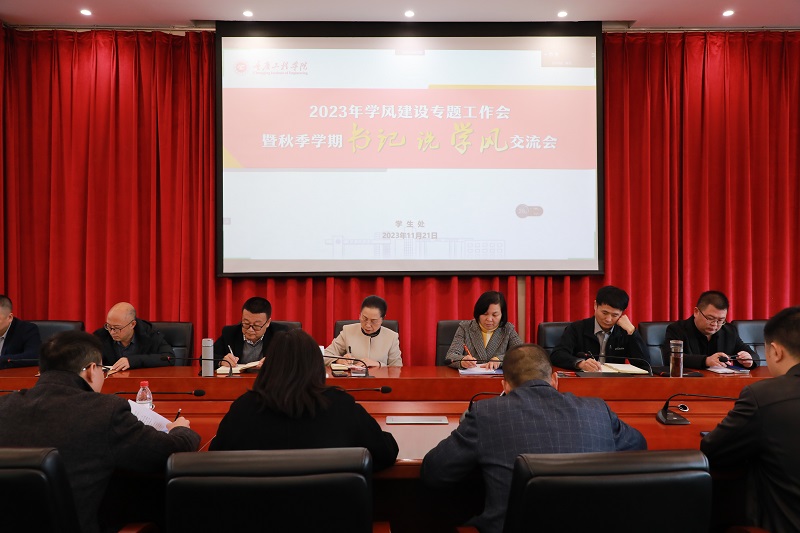 本网讯(文/学生处 熊佳 图/大学生记者团 廖颖姗)为巩固和扩大学校迎评促建以来的学风建设成果,学校印发了《2023-2024学年度学风建设实施方案》。为有序推进学风建设各项工作,学校于11月21日下午在行政楼第五会议室组织召开了2023年学风建设专题工作会暨“书记说学风”交流会,副校长王琼花、王建东,学风建设领导小组成员单位负责人及各二级学院书记和学生科长参会,会议由学生处处长黄燕主持。