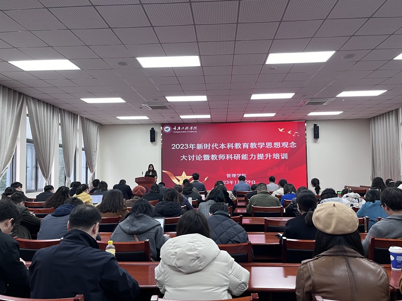 本网讯(文/图 管理学院 杜佳)为切实提高教师科研能力与学术水平,激发广大教职工的科研积极性,11月29日下午,管理学院邀请学校科技处处长汪俊良、重庆邮电大学教授蹇洁在行政楼第四会议室举行了2023年新时代本科教育教学思想观念大讨论暨教师科研能力提升专题讲座。会议由管理学院副院长李玲主持,学院全体教师参加了本次讲座。