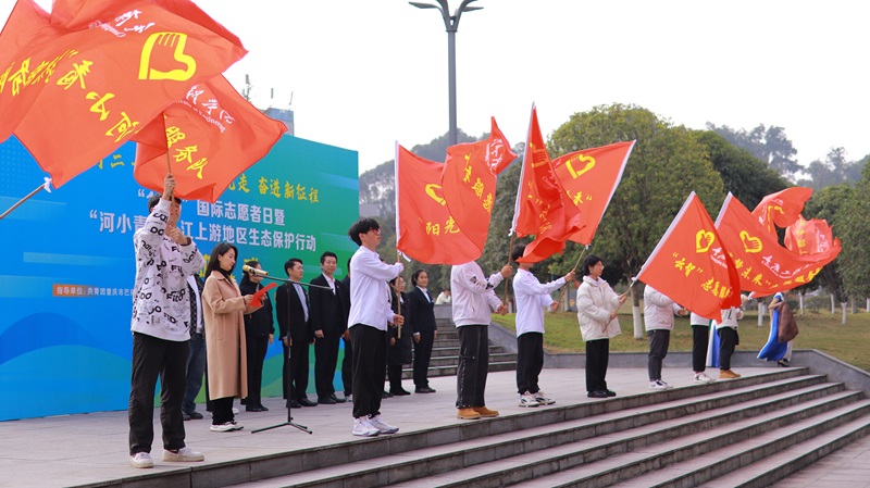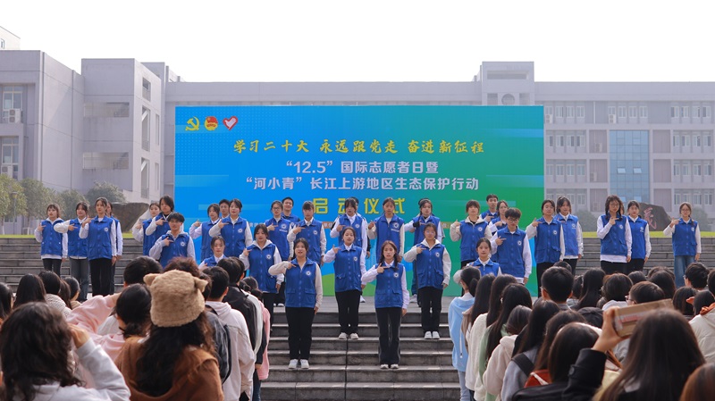 本网讯(文/图 校团委 张俊)为持续推进长江生态环境保护修复,筑牢长江上游重要生态屏障,积极引导广大青少年参与生态文明建设,践行“绿水青山就是金山银山”的理念。12月 6 日下午,我校于图书馆二部广场前举行“12.5”国际志愿者日暨“河小青”长江上游地区生态保护行动启动仪式。校、院团组织负责人、青年志愿者代表500余人共同参与活动。