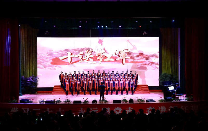 本网讯(文/校工会 邓俊梅 图/大学生记者团)为大力弘扬以爱国主义为核心的伟大民族精神,深情回顾党的奋斗历史,牢固树立“躬耕教坛,强国有我”的志向与抱负,把爱国之情、强国之志融入学校高质量发展进程,凝心聚力描摹学校发展新蓝图。12月8日晚,由学校党委主办,工会和团委承办的 “凝心铸魂跟党走 团结奋进新征程”2023年教职工合唱比赛在南泉校区学术报告厅举行。