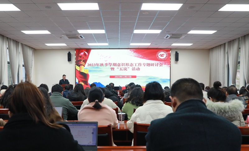 本网讯(文/党委宣传部 图/大学生记者团)为深入学习贯彻习近平总书记有关意识形态工作的重要论述,深入开展时代新人铸魂工程,建立健全意识形态工作体系,增强工作合力,在全校上下营造齐抓共管的良好工作氛围。12月15日,我校召开2023年秋季学期意识形态工作专题研讨会暨“五说”活动。会议邀请了邓卓明教授作专题报告。市教委宣教处处长李林齐、党委书记陈长虹、党委副书记唐小勇、副校长王建东出席,学校职能部门、二级学院相关人员参加会议。