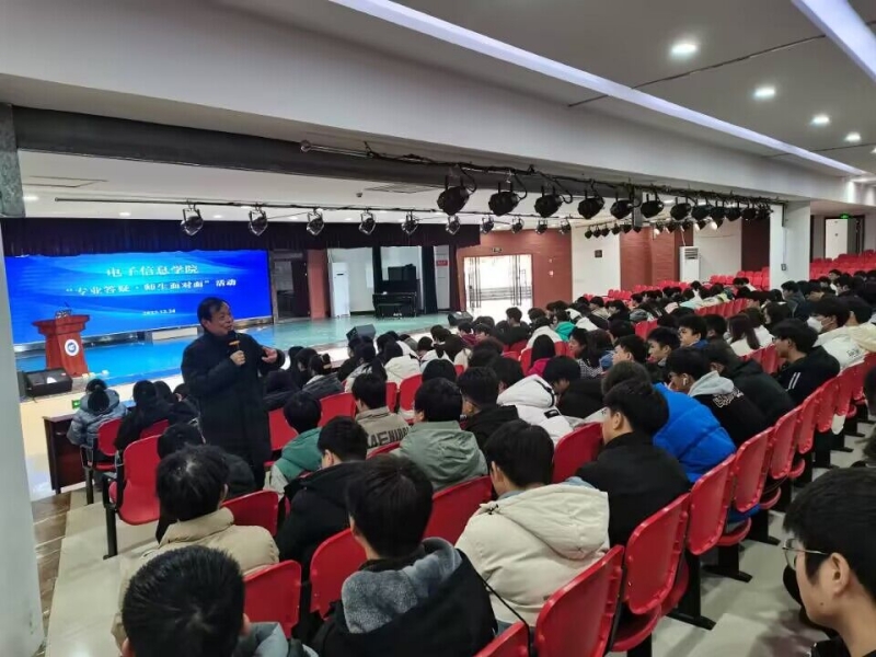 本网讯(文/图 电子信息学院 魏登雪)电子信息学院于12月24日下午在双桥校区报告厅、教学楼107分两个专业大类开展“专业答疑·师生面对面”活动,学院院长何世彪、书记谭思宇、副院长景兴红以及各系部主任、专业带头人参加了此次活动。