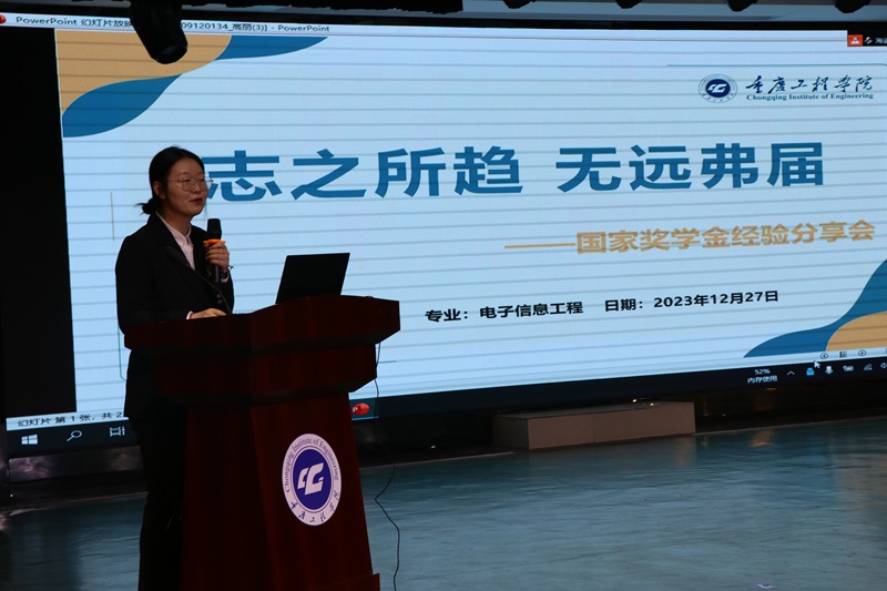 报告会上,7位2023年国家奖学金获得者分别从在校期间的成长经历、学习经历、生活经历向大一的学弟学妹们进行了分享。软件学院学生邵震杰以“学为基础,以赛促学”为题,提醒同学们打好扎实基础,在比赛中锻炼与提升自我;大数据与人工智能学院学生张昶向同学们展示了他在软件开发、技术研究上的丰富成就,鼓励同学们韬光养晦且行事、厚积薄发破万难。计算机与物联网学院学生徐浩鹏分享了自己在班级建设、学生助理团队等工作中的经历与感悟,建议学弟学妹们在实践中锻炼个人能力。电子信息学院学生高丽分享了入党历程、辩论体验与考研经历,向同学们揭示了敢于尝试与挑战的重要性。建筑工程学院学生龙淅分享了两点自我提升的方法,即“行稳致远,进而有为”“厚学笃行,求实创新”。数字艺术学院学生严钰讲述了她在大学期间不断创作、参赛的心路体验,并指出要不断提升自己的专业素养,夯实专业基础。管理学院学生范承怡给同学们分享了两点竞赛经验,一是构建知识脉络,理清思维逻辑,二是强化团队协作,办事紧密周到。