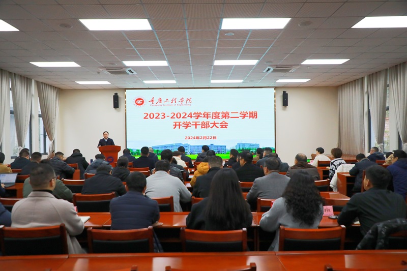 本网讯(文/图 党委宣传部)2月22日上午,学校在南泉校区行政楼201会议室召开2023-2024学年度第二学期开学干部大会。全体校领导、中干参加会议,会议由党委副书记、常务副校长张业平主持。