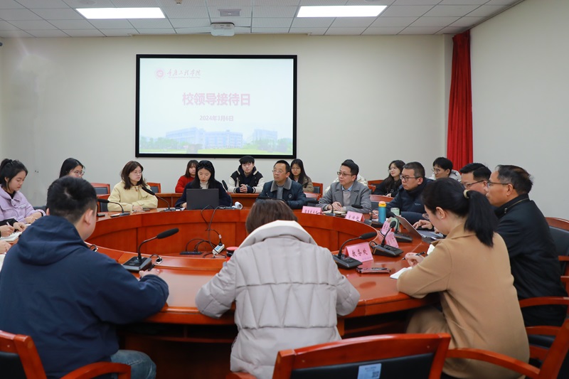 本网讯(文/党政办 黄璐 图/大学生记者团)为推进学校高质量发展,学校组织“校领导接待日”广泛听取各方面意见和建议,切实解决师生员工在学习、生活、工作等方面的困难,密切学校与师生员工的联系。3月6日下午,学校在107会议室举办了2023-2024学年度第二学期“校领导接待日”活动。党委书记陈长虹,各二级部门相关负责人与来自各学院的三十多名学生代表亲切交流,共话学校管理与发展。