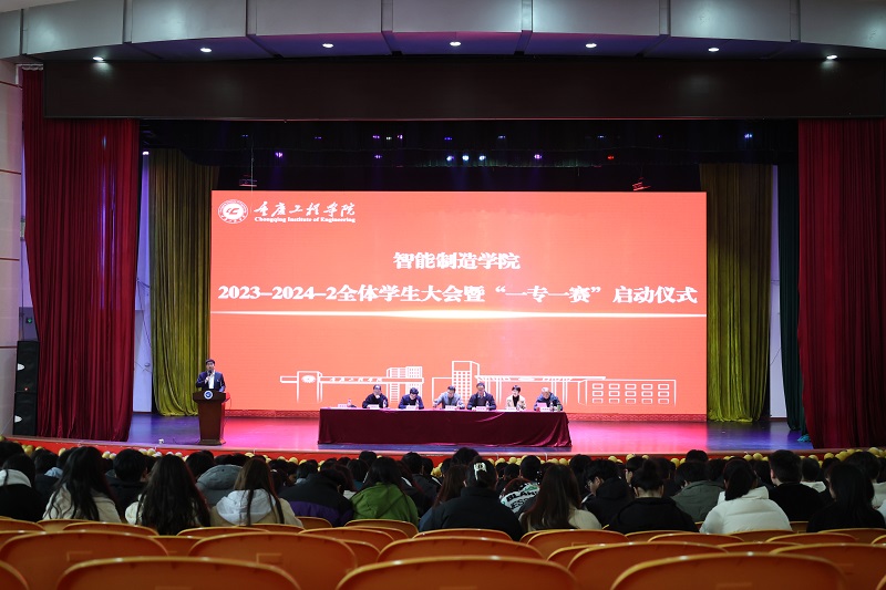 本网讯(文/图 智能制造学院)3月6日下午,智能制造学院在南泉校区学术报告厅举行了新学期全体学生大会暨“一专一赛”启动仪式。全体院领导、教师、辅导员和非毕业班学生参会,大会由学院党总支书记谭思宇主持。