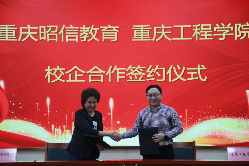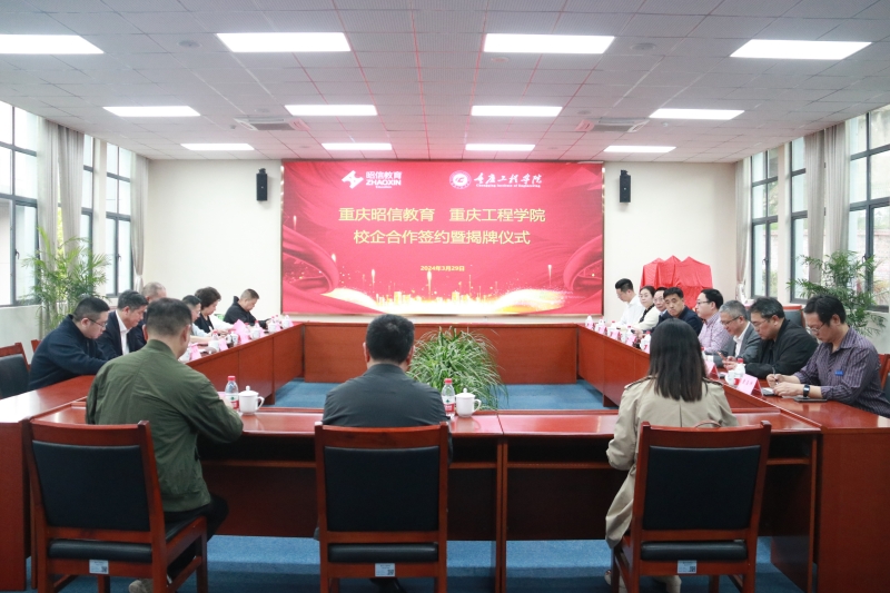 本网讯(文/党委宣传部、教务处 杨彦楠 图/大学生记者团)为进一步深化校企合作,3月29日,我校在行政楼201举行了与重庆昭信教育校企合作签约暨揭牌仪式。重庆市教委民办教育处处长梁杰,重庆市江北区大数据应用发展管理局副局长庄毅,新加坡资讯通信媒体发展局助理司长胡英,昭信教育科技集团董事长、昭信教育研究院执行院长吴睫,重庆工程学院理事长、校长王万均及双方相关领导参加会议。会议由我校党委副书记、常务副校长张业平主持。