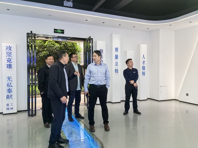 副校长谭明术引导杨强一行人参观了校史馆,详细介绍了学校从培训机构到专科、本科的办学历程,特别是“校企合作、产教融合”的办学理念和所取得的显著成果。杨强对我校的办学理念和成绩给予了高度评价。