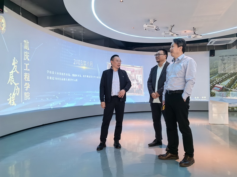 本网讯(文/图 软件学院 李华平)3月28日,国网信产集团中电普华公司总经理杨强、营配事业部总经理熊根鑫等领导,在重庆正大华日有限公司总经理马国盛的陪同下,莅临我校考察办学情况。