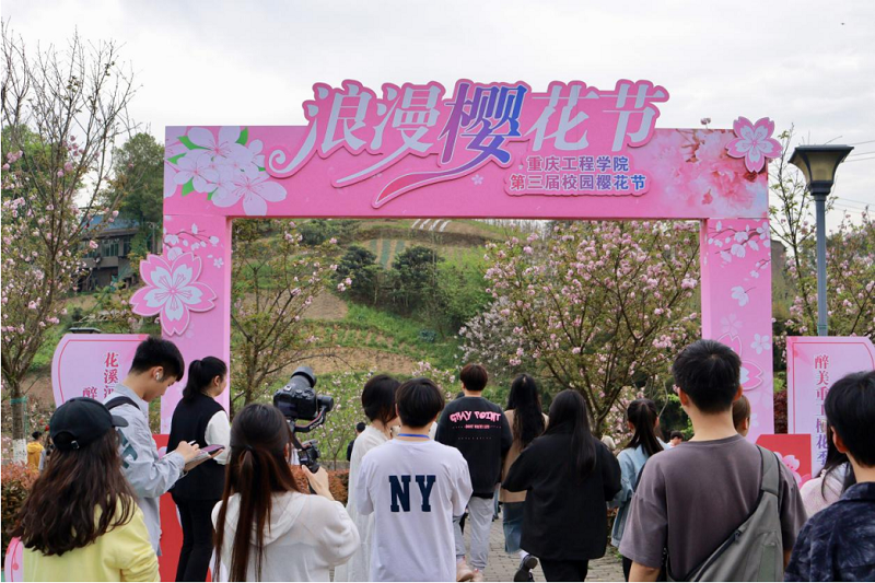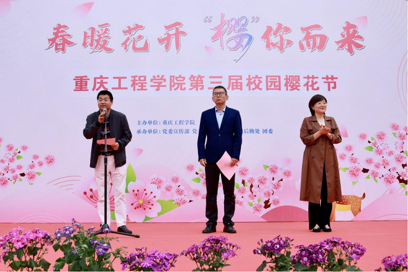 本网讯(文/图 大学生记者团)不赏花几枝,怎知春几许?为了丰富校园文化生活,培养同学们的艺术修养、审美情趣和健康意识。3月29日下午,重庆工程学院第三届校园樱花节开幕式及“漫跑”活动在同学们的欢笑声与嘹亮的礼炮声中拉开帷幕。党委宣传部、学生处、基建后勤处负责人出席开幕式。开幕式由团委书记黄涛主持仪式。一千余名同学参与此次活动,线上直播同步开展。