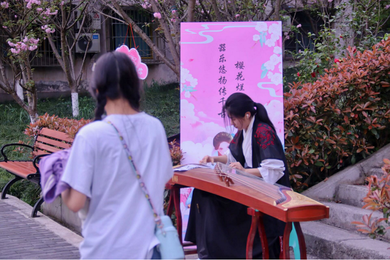 活动伊始,同学们从图书馆二部出发,前往樱花大道,整个校园被粉色的樱花花海装点得如诗如画。同学们在樱花树下留影、拍照,纷纷被樱花的美丽所吸引。此外,学校还准备了各种活动和展览,在沿途设置了8个观赏点,完成“打卡”活动即可领取奖品一份,到达樱花大道后,大家都积极地进行打卡活动。除此之外,还能观赏到古筝、动漫和汉服表演。为此次活动增添了特别的趣味,也吸引了更多人的参与。