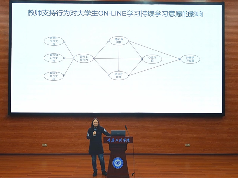 软件学院陶雪娇教授和大学生素质教育中心夏冬梅教授围绕“学生如何做科研”主题,与同学们进行了分享交流。陶雪娇主要从大学生科技论文写作方面入手,讲解了学生参与科研的基本途径、科研论文基本结构以及常见问题分析等。夏冬梅聚焦人文社科类科研,从如何发现问题、如何研究问题、如何形成成果三个方面进行了科研指导。两位教授的讲解结合专业课程、结合具体案例展开,深入浅出,互动性强,现场气氛轻松愉悦,达到了预期目的。
