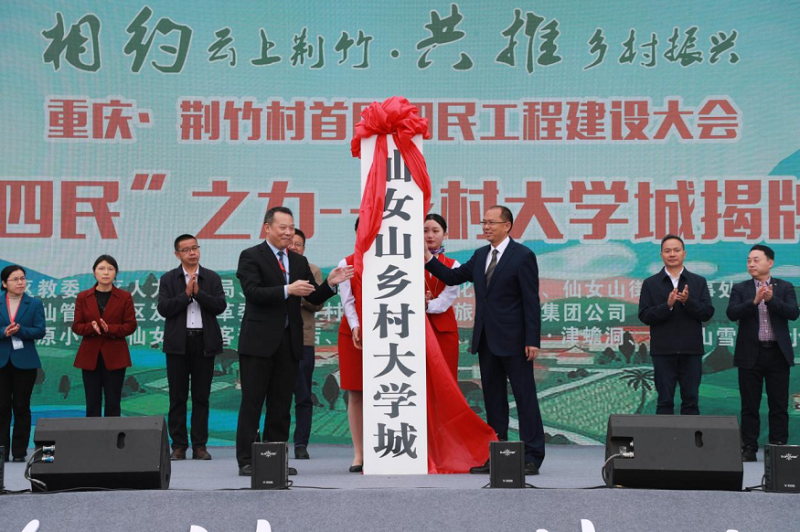 揭牌仪式上,我校与仙女山街道签订校地合作协议,入驻仙女山街道荆竹村,成为仙女山乡村大学城的一员,促进荆竹村创新链、产业链、资金链、人才链的深度融合,共同打造山区现代化的仙女山样板。一同入驻的还有重庆大学、北京工业大学、中国地质大学(北京)、西南政法大学、重庆师范大学、吉首大学、重庆工商大学、重庆文理学院、重庆三峡学院等高校。