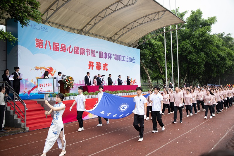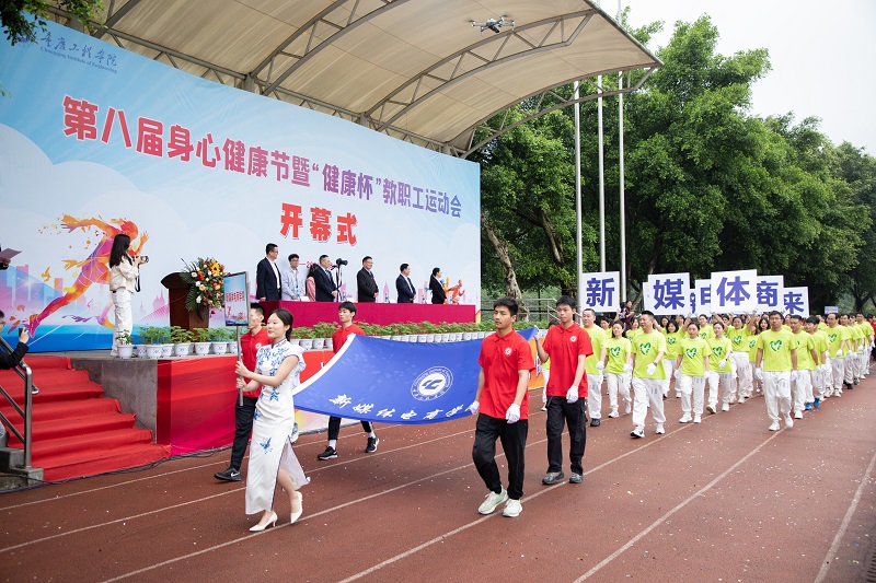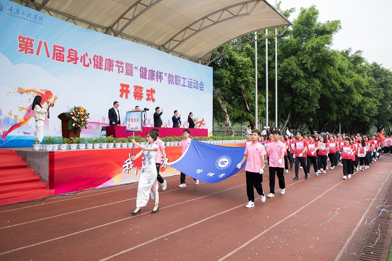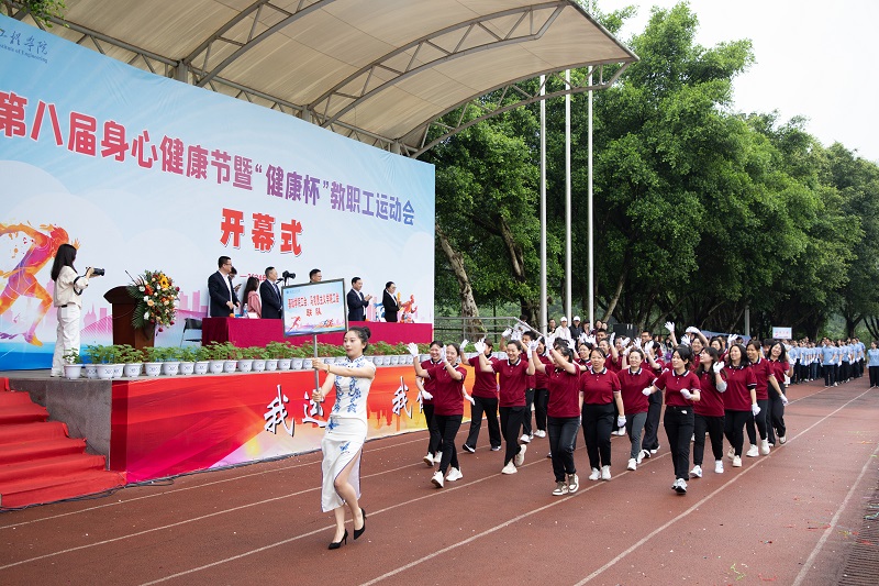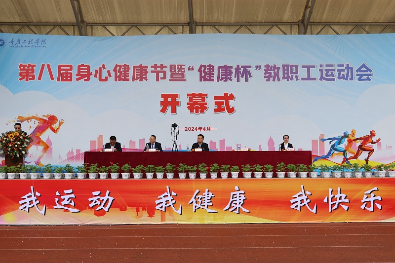 本网讯(文/大学生记者团 陈慧敏 图/大学生记者团、新媒体中心)春风送爽,百花沁芳。为了进一步提升我校全体师生身体健康素质,4月11日,我校第八届身心健康节暨“健康杯”教职工运动会开幕式在南泉校区隆重启幕,学校党委书记陈长虹,党委副书记、常务副校长张业平,副校长谭明术、王琼花、王建东出席,各二级学院院长、书记及师生代表参加。开幕仪式由谭明术主持。