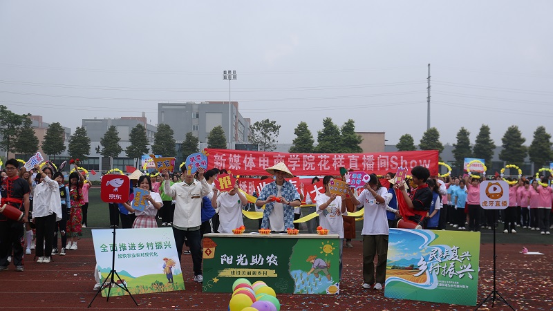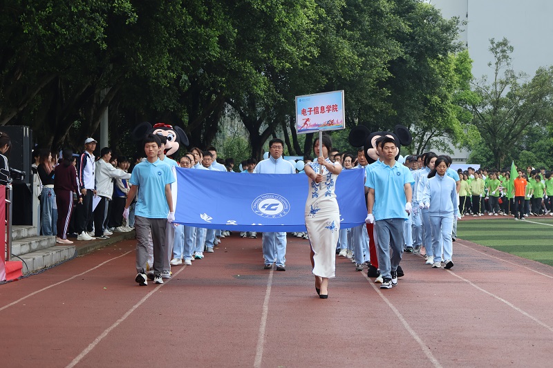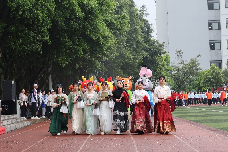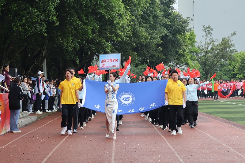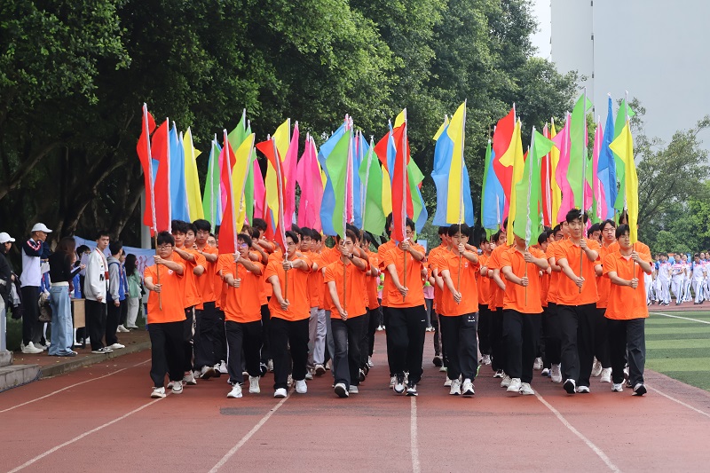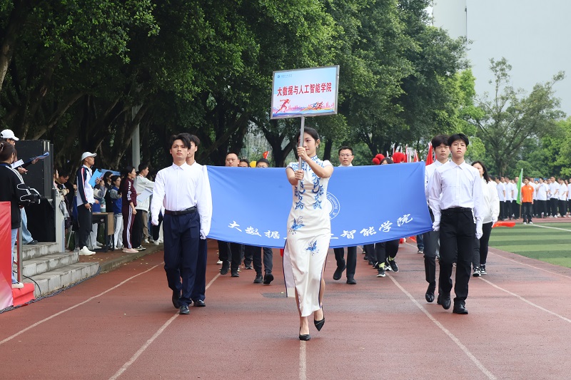 恰同学少年,风华正茂。伴随着激动人心的《运动员进行曲》,正式拉开了开幕式的第一项——各方阵入场。同学们踏着激扬的旋律,满怀激情。首先迈着整齐的步伐入场的是国旗方阵,紧接着校旗、运动会会旗和校风、校训、学风方阵入场,他们步履铿锵,英姿飒爽,展示着重工学子团结自强、拼搏向上的精神风貌,紧接着是彩旗方阵和花环方阵入场。各学院方阵各展特色,舞狮表演雄浑有力,直播助农创意新颖,汉服走秀韵味十足……为全校师生带来了一场视觉盛宴。