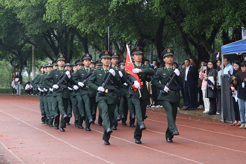 国旗护卫队迈着铿锵有力的步伐,高举国旗,全体师生肃立,升国旗,高唱国歌。随后运动员代表和裁判代表分别进行了宣誓,向全体师生表明“公平、公正、公开”的态度,确保此次运动会安全、顺利地进行。