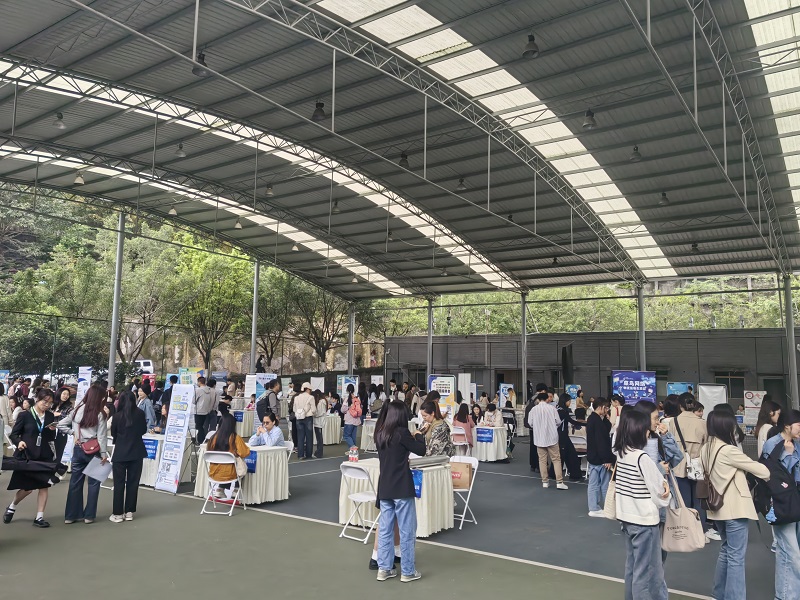 本网讯(文/图 管理学院 张中义)4月12日上午,重庆市2024年春季电子商务相关专业专场招聘会在四川外国语大学西区风雨球场举行。本次招聘会由重庆市商务委员会、重庆市经济和信息化委员会指导,重庆市电子商务协会联合四川外国语大学主办,重庆大学、重庆工程学院等9所高校协办。我校管理学院牵头组织一批本校未就业学生参加本次专场招聘会。此次招聘会旨在为学生们提供与电子商务、物流等行业相关企业的直接交流机会,推动学生就业。