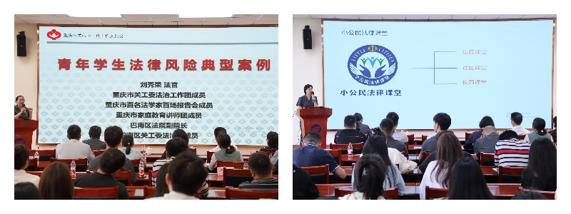 芦明玉、刘秀荣就青年学生学习生活中常见的风险及典型案例分别开展预防电信诈骗和青年学生法律风险典型案例的讲座,以上讲座以案释法、以案讲法、以案普法,引导学生做社会主义法治的忠实崇尚者、自觉遵守者、坚定捍卫者。