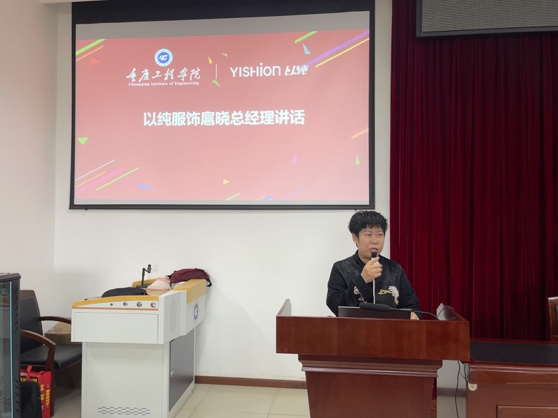 会上简玉刚首先感谢以纯各位领导对校企合作的支持和付出,感谢以纯为同学们提供的就业平台。他认为,以纯是一个有良好发展前景的时尚品牌,以纯集团是一家实力雄厚的头部企业,是一个注重员工发展的事业平台。最后简玉刚表示,以纯有系统的培养体系和人才发展规划,希望同学们能在企业通过实践实操提升自己的核心竞争力。