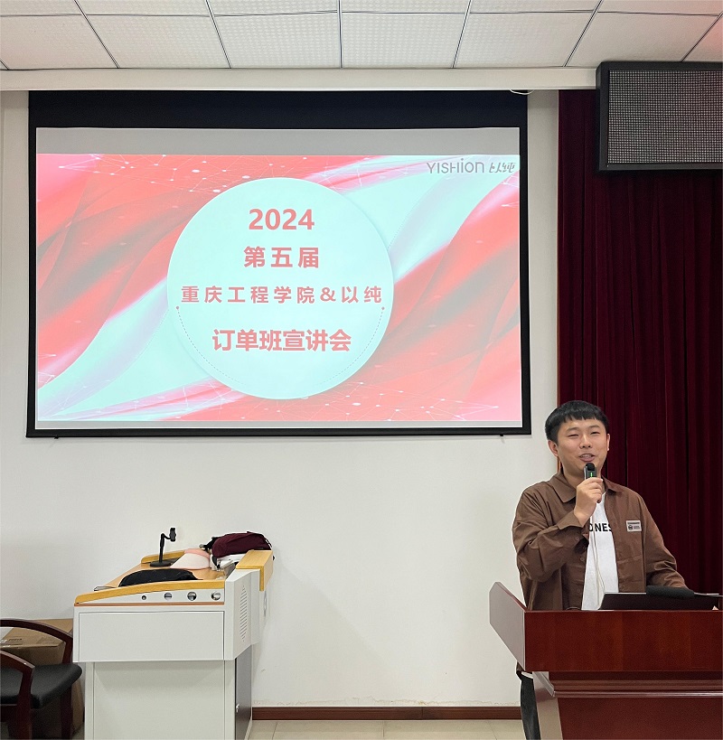 余正洋介绍了以纯的发展历史、经营范围、经营理念、公司架构、产品情况以及订单班培养模式、薪资待遇、晋升通道等,让同学们对以纯订单班有了全面的认识。余正洋鼓舞同学们加入以纯实现自己的梦想,也希望大家能和以纯一起共同成长、把握机会、认真工作、快乐生活。