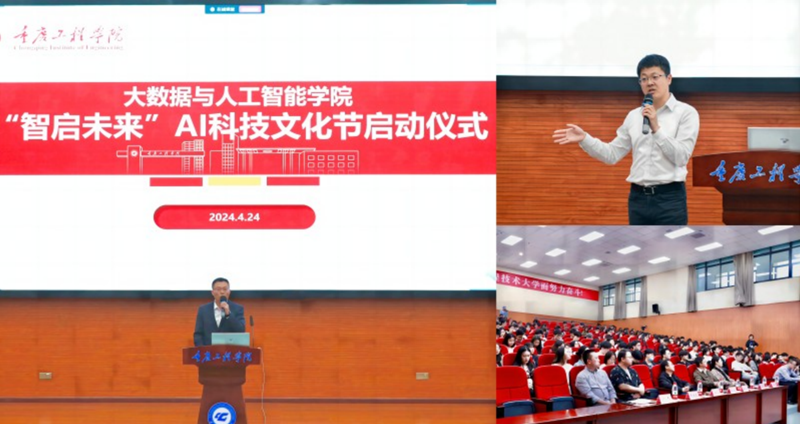 本网讯(文/图 大数据与人工智能学院 王惠俊)“科学启迪智慧、科技创造未来”,为了增强学生对大数据与人工智能领域的认知,提升实践能力,培养创新思维。4月24日,由重庆工程学院大数据与人工智能学院组织承办的首届“智启未来”AI科技文化节在南泉校区隆重开幕。副校长王建东、教务处长杨倩、学生处长黄燕以及学院各级领导、教师和辅导员共同出席仪式现场。