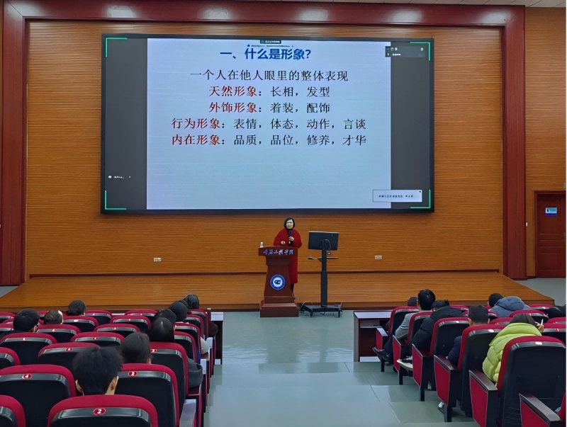 学院特邀请大学生素质教育中心邹春霞教授,为全院教职员工做了一场《教师职业形象塑造》的专题培训。邹春霞结合教育行业特点,以其专业的知识和独特的视角,从外饰形象、行为形象、内在形象等维度,为教师们提供了宝贵的职业形象塑造建议。
