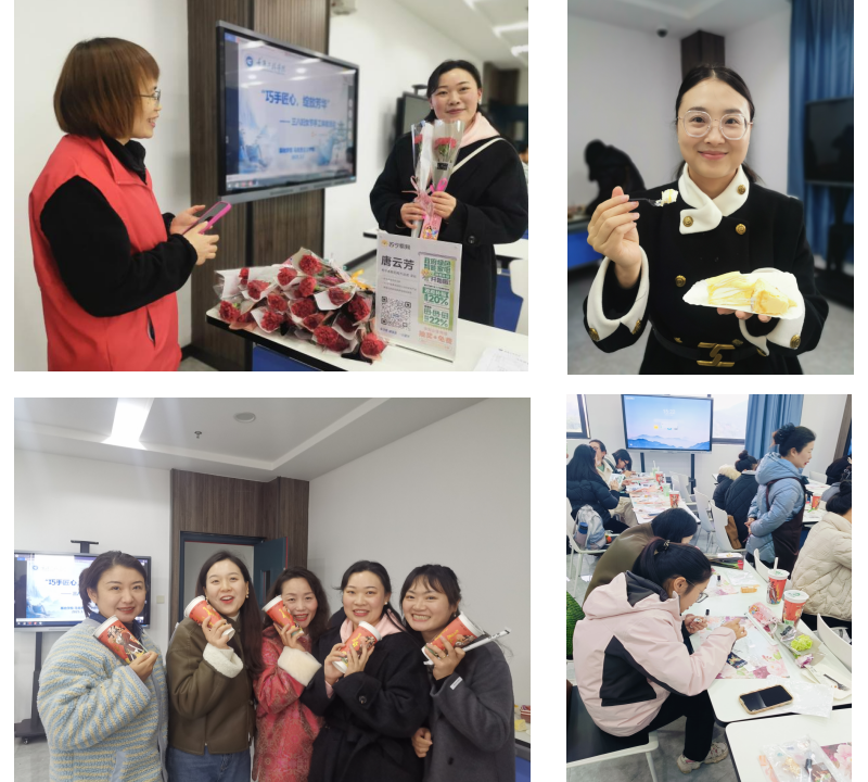 3月5日下午,基础学院、马克思主义学院(南泉校区)在南泉校区71105教室举办了主题为“巧手匠心,绽放芳华”的温馨且充满创意的女神节活动。活动现场准备了美味的甜点、香浓奶茶和美丽鲜花,为女教职工们送上节日的美好祝福。