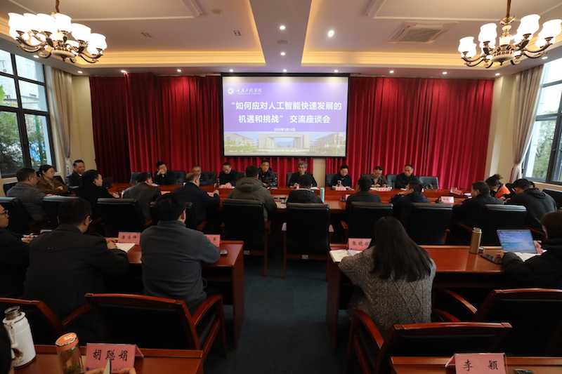 本网讯(文/图 党委宣传部)为主动适应和积极应对人工智能技术革命带来的机遇和挑战,推动学校在人工智能领域的教学、科研、管理与社会服务能力全面提升,3月14日,我校在南泉校区行政楼第五会议室召开了“如何应对人工智能快速发展的机遇和挑战”交流座谈会。理事长、校长王万均主持并讲话。