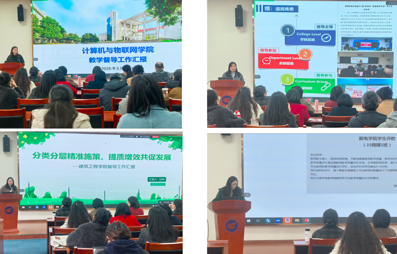 会上,学院教学督导代表结合实践案例,分享督导工作经验与新一年工作规划。计算机与物联网学院秦旗提出“督导双线并行”,通过优化听评课反馈、巡课公示及分层帮扶强化“导”的实效;管理学院赵博以教师发展为核心,构建“工作坊+研修营”常态化赋能体系,助力新老教师共同成长;建筑工程学院孙凤聚焦“分类施策”,依托教学质量数据库实施精准帮扶策略;新媒体电商学院的周熙妍聚焦于“评价机制优化”,采用过程性与终结性评价双轨并行的模式,使督导评分与学生评教更加合理;数字艺术学院彭赟通过两个督导案例,生动的讲解了在工作中发现亮点推荐典型的具体做法,促进教师互相借鉴共同进步;计算机与物联网学院孙令翠通过“以赛促教、以赛促建、以赛促改”的实践路径,展现多岗锻炼对教学能力提升的推动作用。