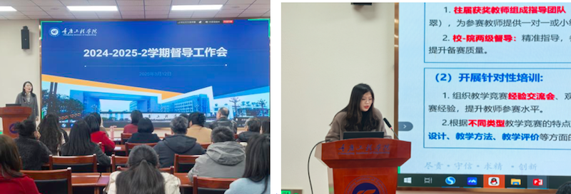 本网讯(文/图 教师发展中心 李莉)3月12日,我校在第四会议室召开2024-2025-2学期全校督导工作会,南泉和双桥校区分别以线下和线上的方式参会。副校长王琼花出席,校院两级教学督导参加会议。会议由教师发展中心主任张晓颖主持。会议围绕“深化督导职能、创新质量评价、助力教师成长”,通过案例分享、标准解读与交流研讨,系统部署新阶段教学督导工作,为全面提升教育教学质量赋能。