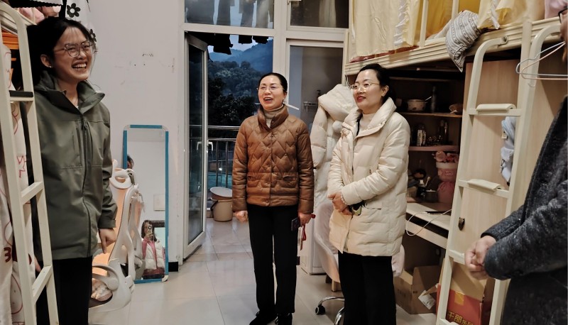 在学生宿舍,王琼花与学生逐一交谈,关心询问同学们的学习和生活等各方面情况,认真听取同学们对学校教育教学、后勤服务保障等方面的建议和意见,对同学们在学习生活方面存在的疑惑予以现场解答,并提醒学生要注意身体健康,保持良好的作息规律。同学们畅所欲言,分享了在校学习生活的感受和体会,提出了自己的想法和建议。王琼花指出,希望同学们珍惜宿舍情谊,发挥宿舍主阵地,让宿舍变“小家”,让同学变“亲人”。