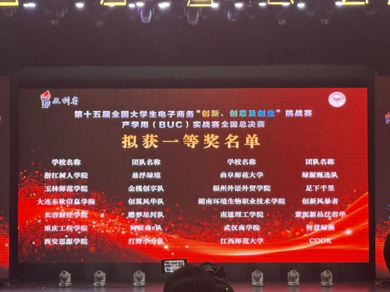 7月21日,新媒体电商学院王维冰老师指导的“网联商e队”在第十五届全国大学生电子商务“创新、创意及创业”挑战赛产学用(BUC)实战赛中荣获全国一等奖。