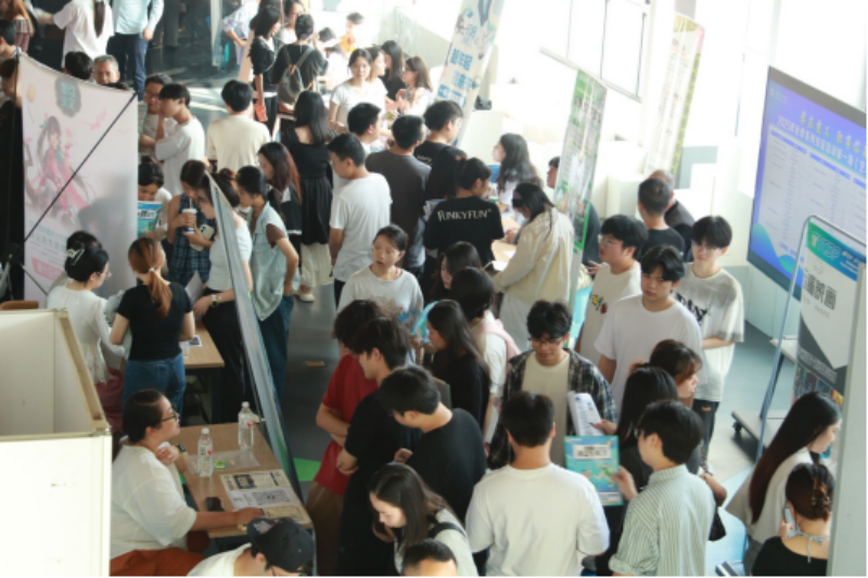 双选会现场,近150名毕业生手持精心制作的作品集和简历,满怀期待地穿梭于各个企业展位之间。参会企业类型丰富多样,广泛涵盖游戏设计、动画等多个热门领域,其中既有在行业内深耕多年、底蕴深厚的老牌公司,也有近年来迅速崛起、充满活力的新兴企业。这些企业带来的岗位丰富多元,平面设计师、UI设计师、动画师等岗位应有尽有,全面覆盖了学院的所有艺术专业方向,为毕业生提供了广阔的选择空间。