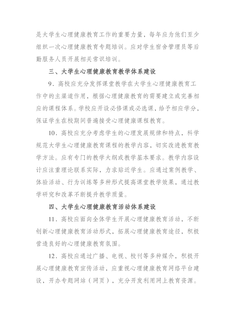 教育部办公厅关于印发《普通高等学校学生心理健康教育工作基本建设标准(试行)》的通知