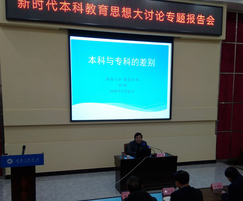 报告会上,徐辉教授以“本科与专科的差别”为题,从本科教育专科教育的概念、国外对本科的认识与改革、新世纪我国本科教育改革、提高高等教育质量新阶段等四个方面,系统阐释本科教育与专科教育的区别与联系,对提高新建本科院校教育教学质量提出意见建议。
